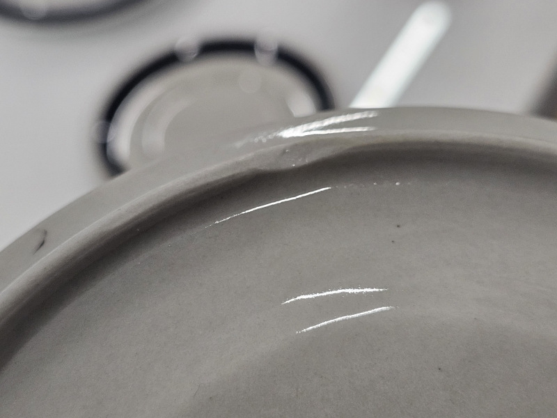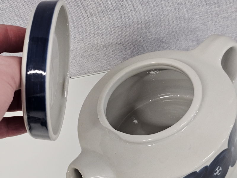 Yhden tassin pohjasta pala pois, muut hyväkuntoiset. Kupin h: 10cm