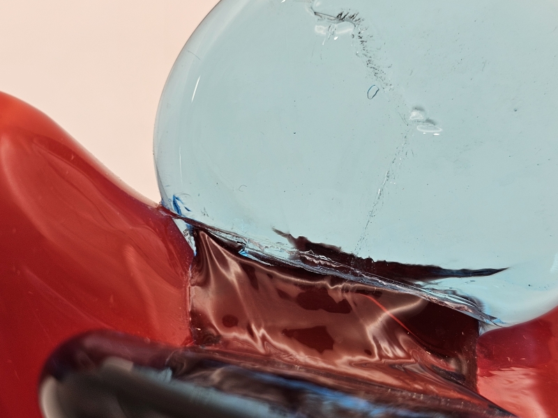Toisessa siivessä siisti liimaus. P: 12,5cm, k: 12,7cm