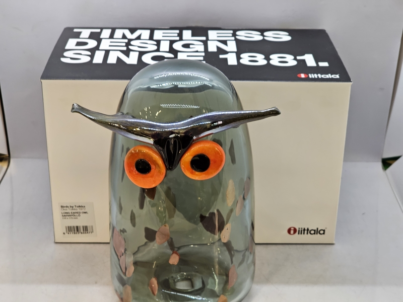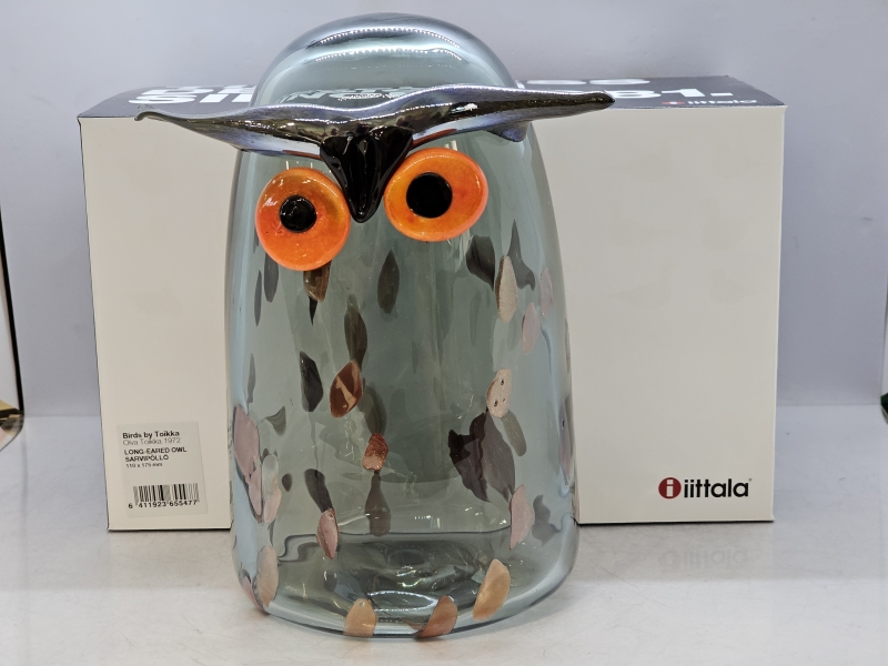 #334 - Oiva Toikka, taidelasilintu Sarvipöllö + laatikko