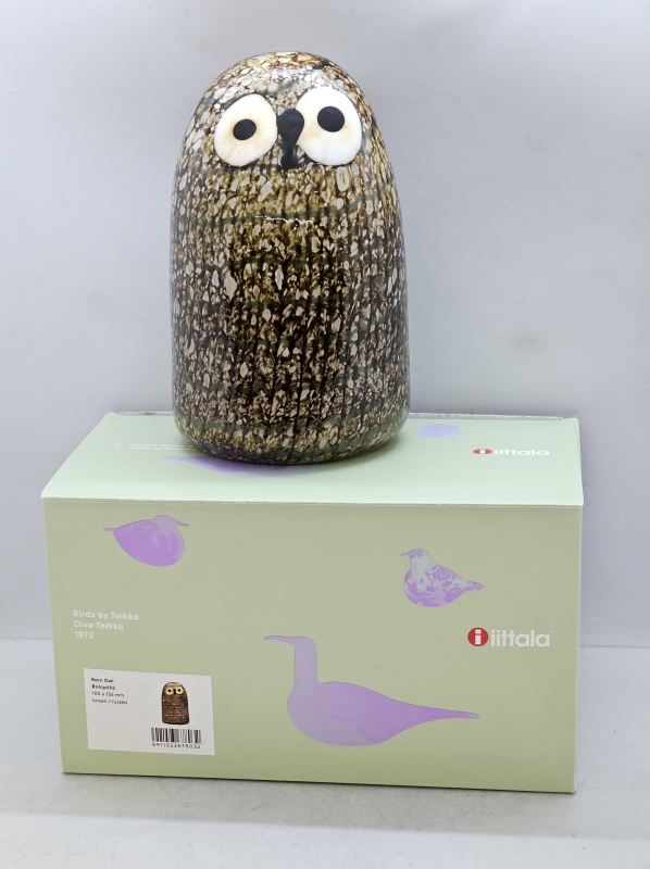 #335 Oiva Toikka, taidelasilintu Riihipöllö + laatikko