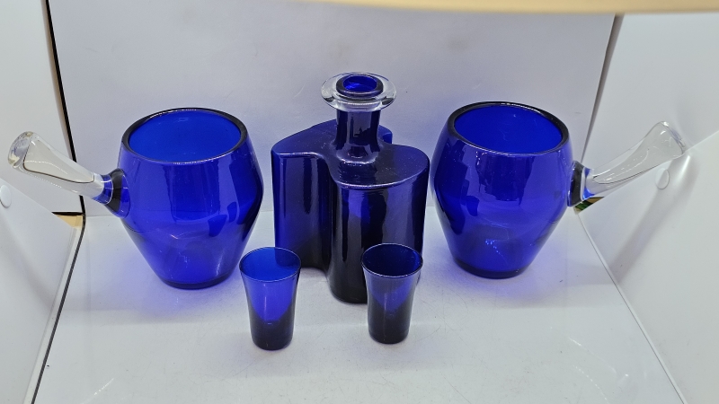 #309 2kpl Kumela Sarvituoppeja + Holmegaard pullo ja 2kpl laseja