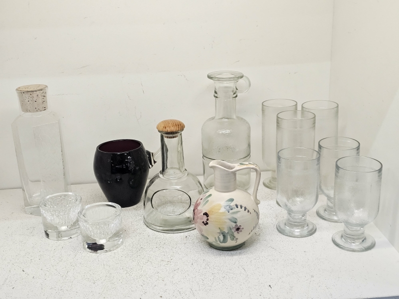 #432 Arabia Ara-kaadin ja erä lasia: Mm. Kumela sarvituoppi & Siiroinen Pub-lasistoa