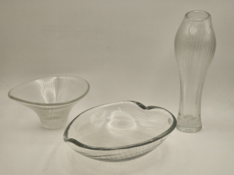 #452 3kpl Tapio Wirkkala viivahiottuja esineitä