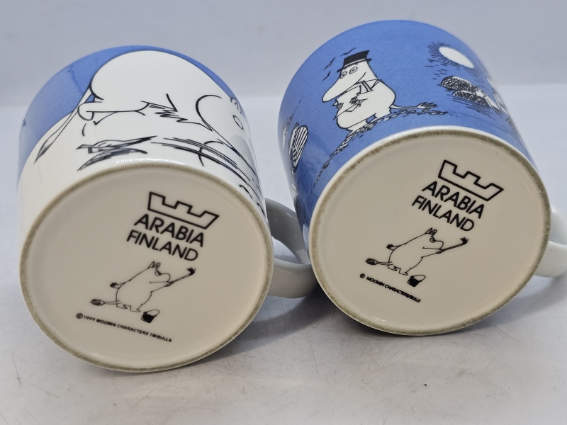 #733 2kpl 90-luvun Muumimukeja: Pullopostia 1991-99 & Muumipeikko Jäällä 1999