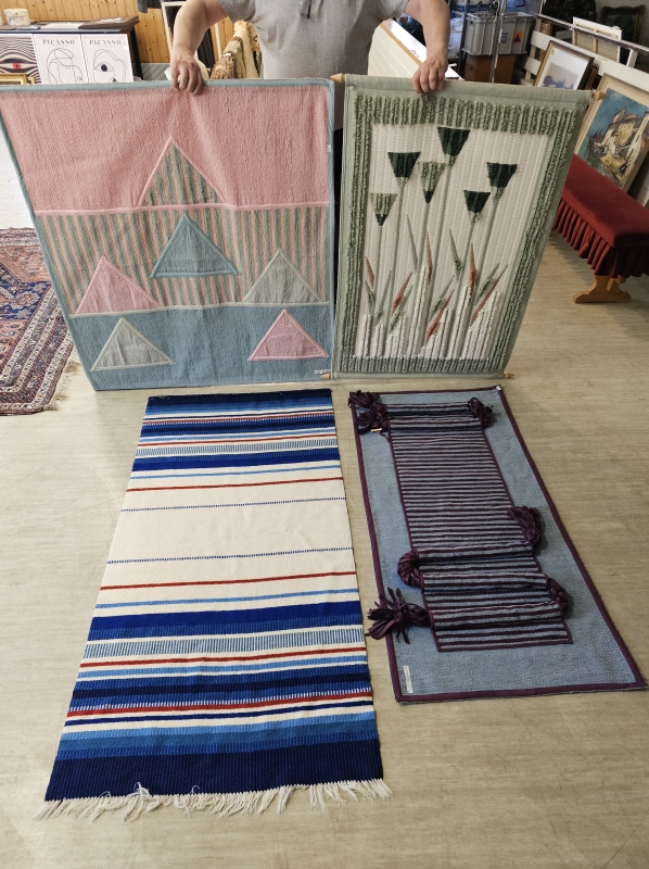 #964 - 4kpl seinävaatteita: Mm. Hanhisalon kutomo Oy / Sirkku Meriläinen