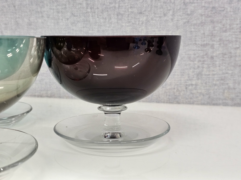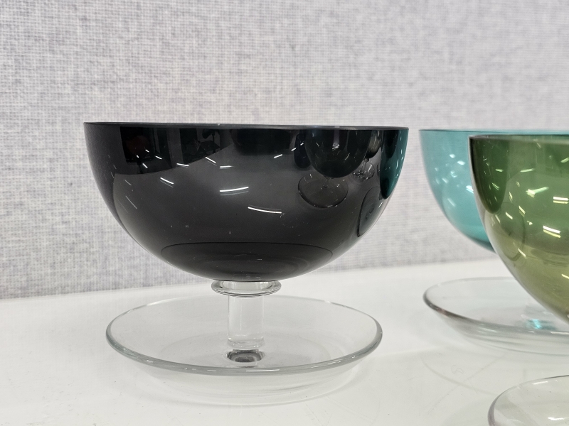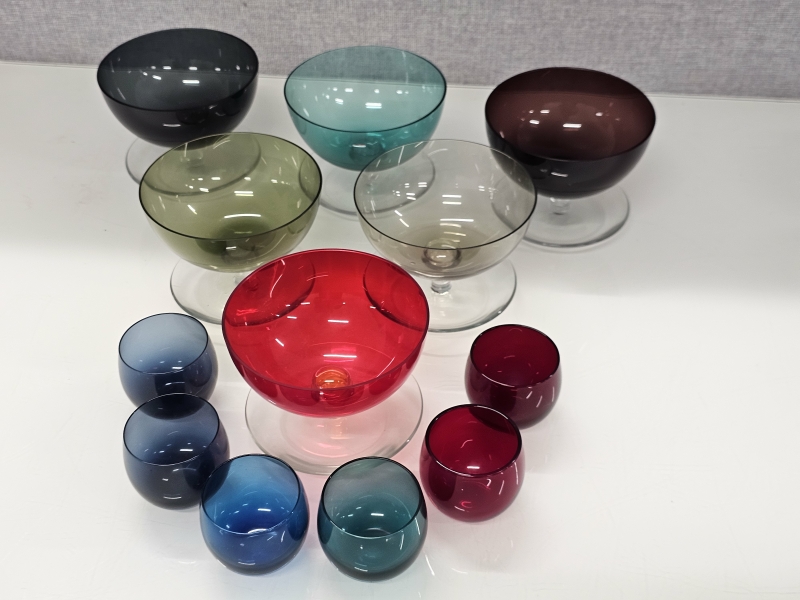 #485 Saara Hopea lasistoa: 6kpl jälkiruokakulhoja + 6kpl Marja-laseja