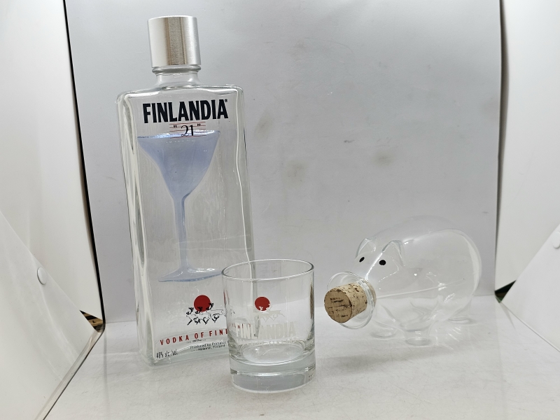 #988 Finlandia Vodka pullo & lasi + viinapossu