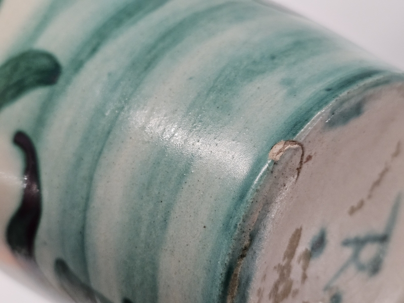 Maljakossa pohjassa ja reunassa vika. Isomman h: 28,7cm