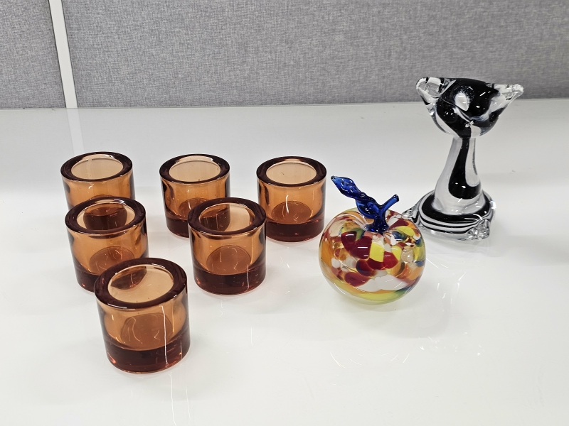 #994 - Lasikissa, omena ja 6kpl Kivi-tuikkuja