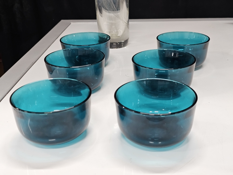 #978 Erä lasia: 6kpl Franck Fasetti & 1kpl hiottu maljakko