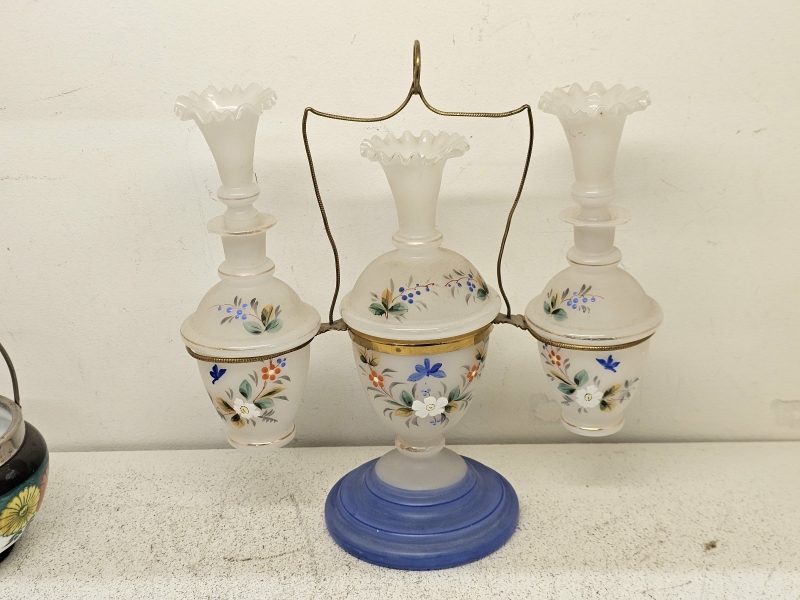 #784 4kpl maalattuja lasiesineitä, 1900-luvun alku