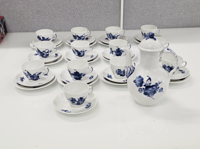 Yhdessä pullalautasessa kolhu, muut hyväkuntoiset. Kupin h: 8cm