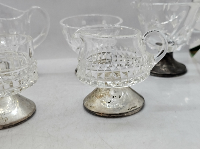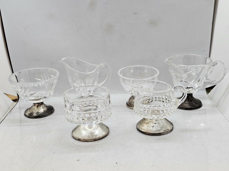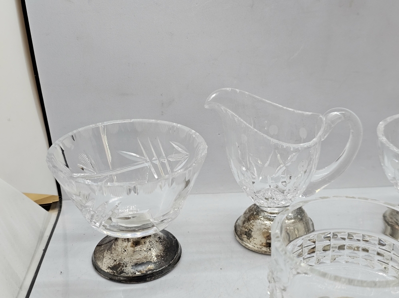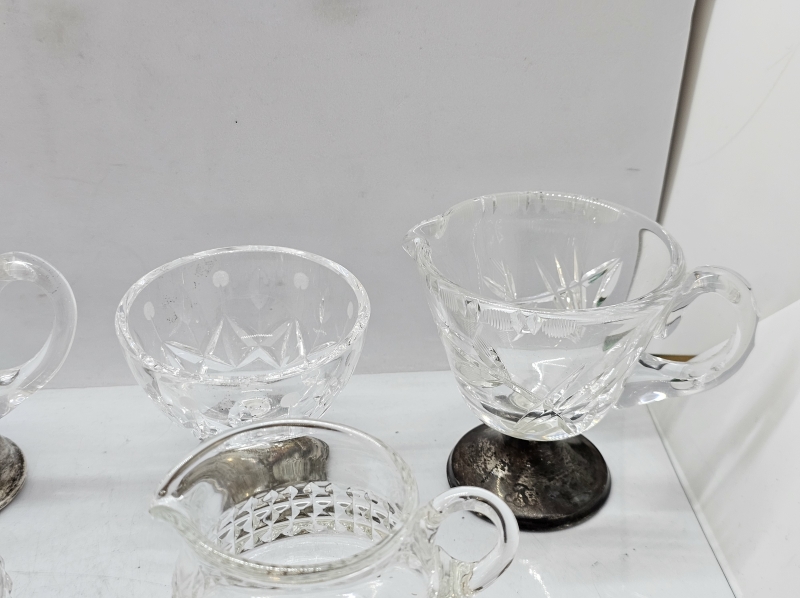 #795 Erä kristallisia sokerikkoja ja kermakkoja hopeajaloilla
