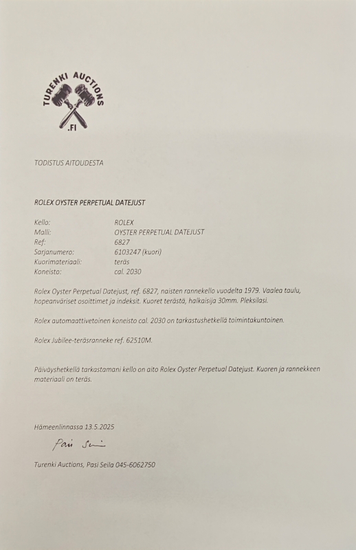 Ref: 6827. Halkaisija 30mm. Tuntuisi toimivan. Mukana aitoustodistus