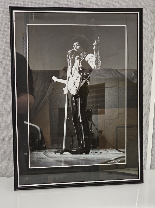 #1803 Jimi Hendrix valokuvan näyttelytasoinen printti Kulttuuritalo Helsinki 1967 keikalta, valokuvaajan Ingemar "Ingo" Forsbergin signeerauksella