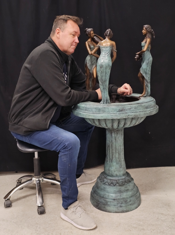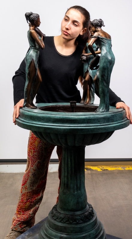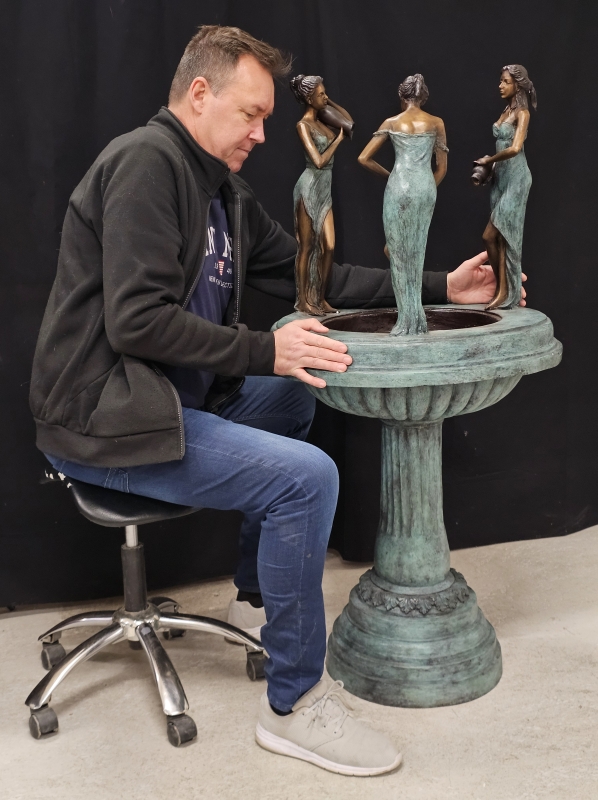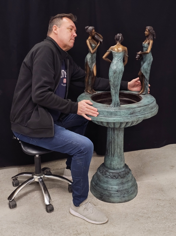 #1905 Hieno pronssinen suihkulähde kolmella naispatsaalla