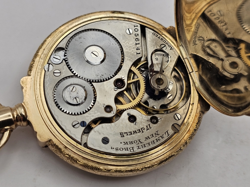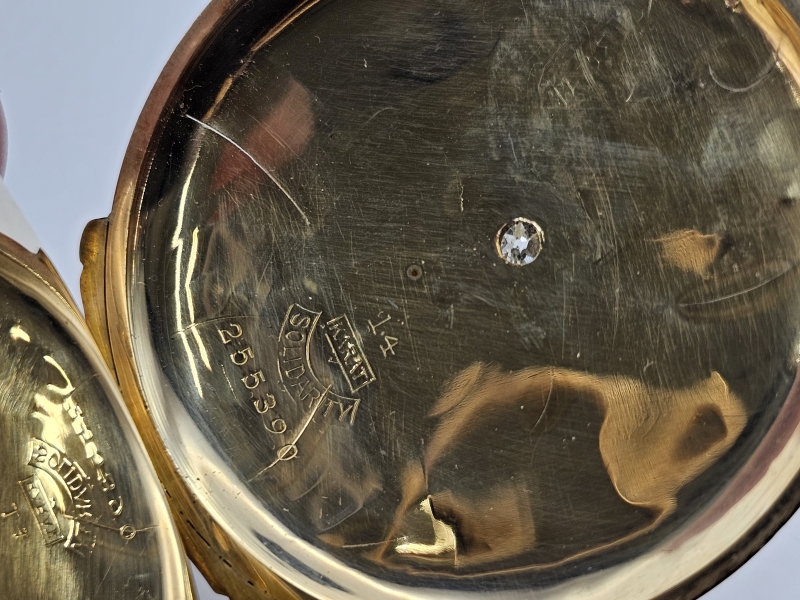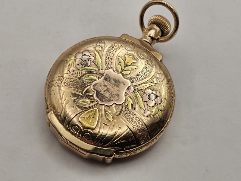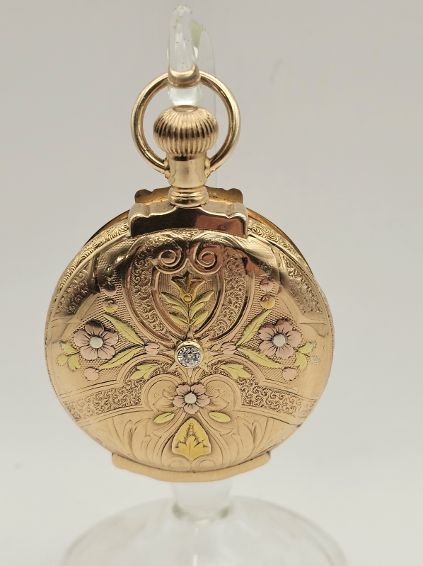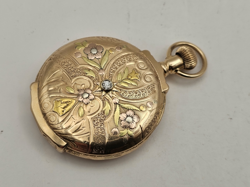 #1344 14k monivärikultainen taskukello timantilla, Lambert Bros., 97,93g