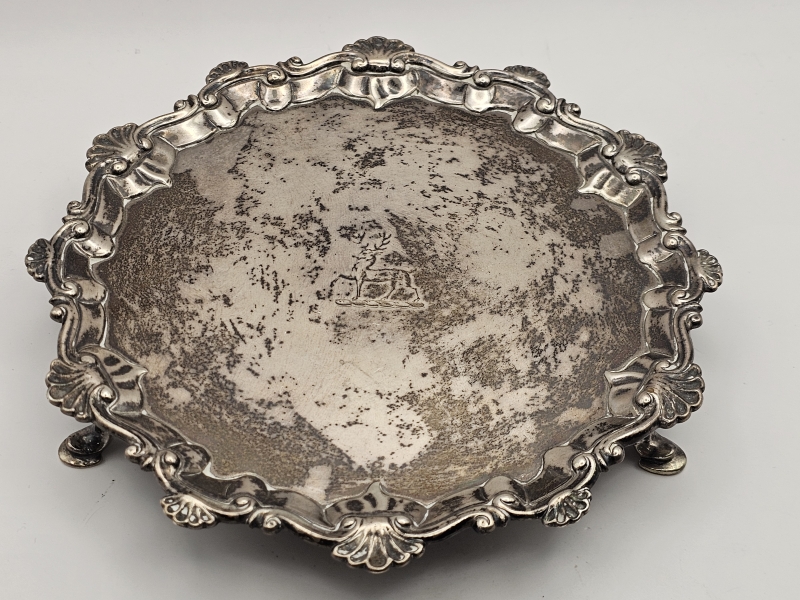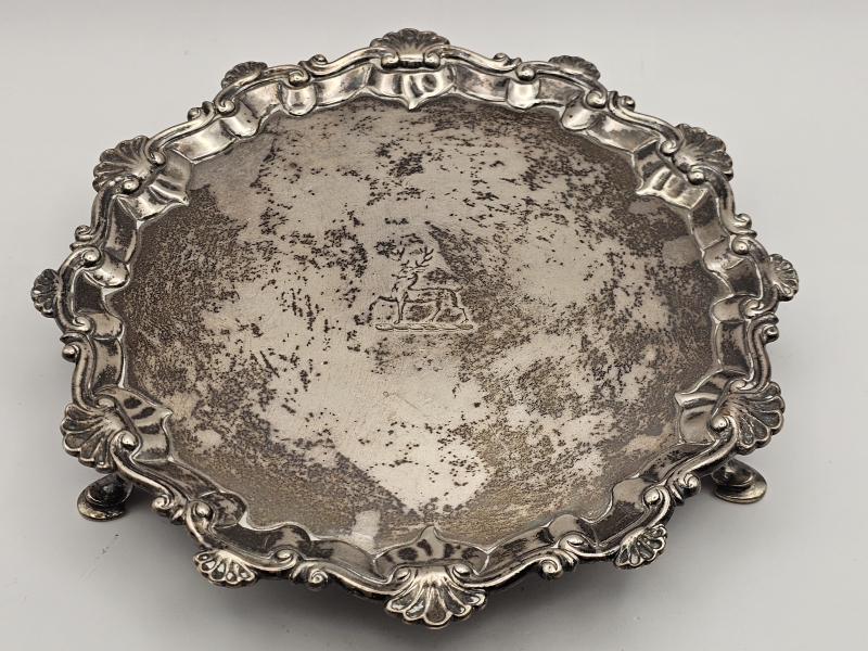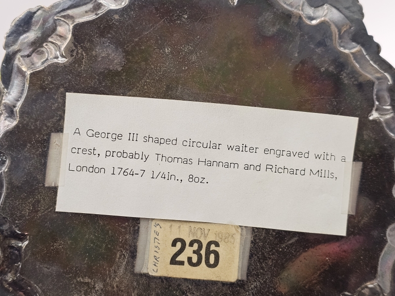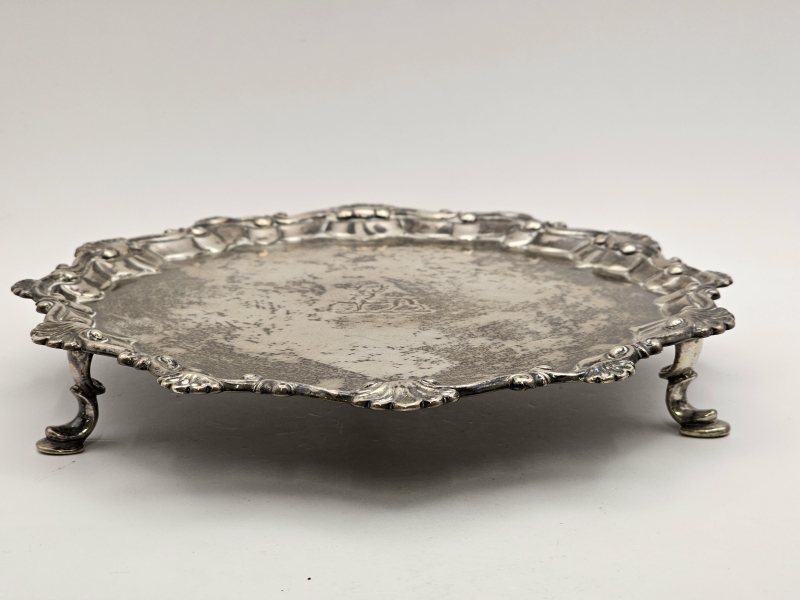 #1346 Hopeinen jalallinen tarjoilulautanen, Thomas Hannam [Hammond] & Richard Mills, Lontoo v.1764