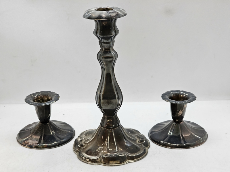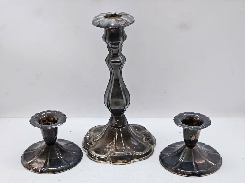 #1351 1+2kpl hopeisia kynttilänjalkoja