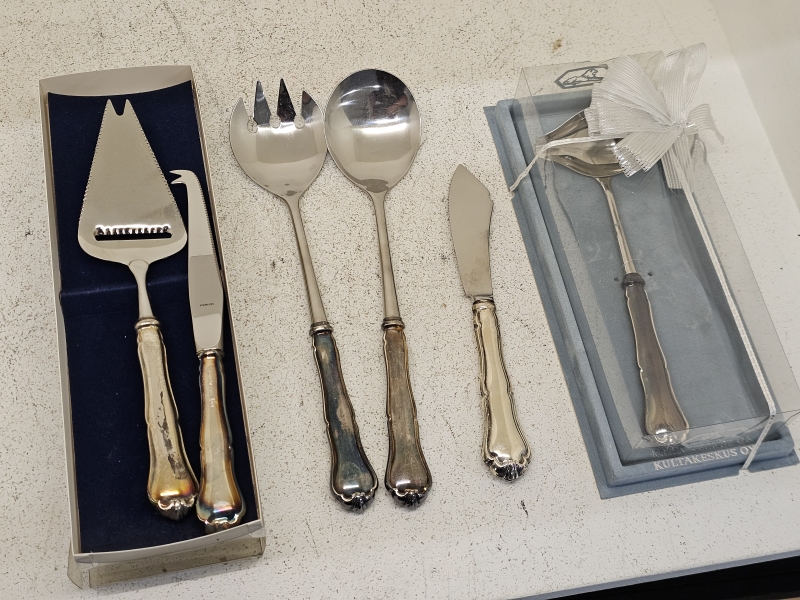 #1357 Erä hopeisia chippendale -ottimia Osuuspankki -logolla