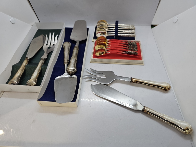 #1382 - Erä hopeaa: 6+6kpl kahvilusikoita + ottimia teräskärjillä