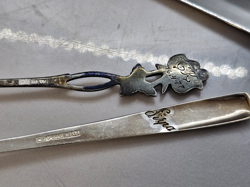 #1382 Erä hopeaa: 6+6kpl kahvilusikoita + ottimia teräskärjillä
