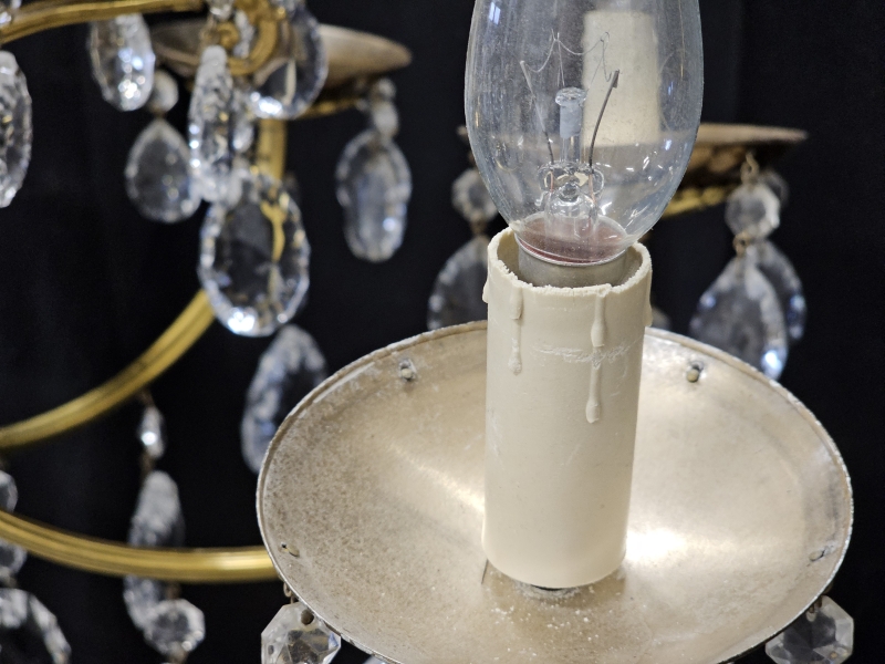 Yhdessä kynttiläholkin sisäosan kierre puuttuu ja holkeissa hapertumaa. H: 67cm