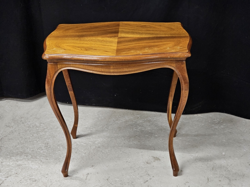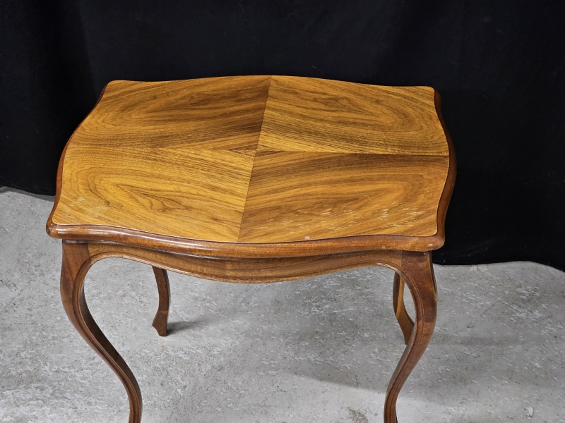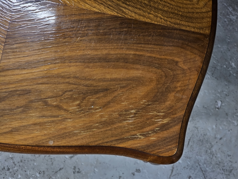 58cm x 43cm, korkeus 56cm. Kulumaa, lakassa krakeloitumaa