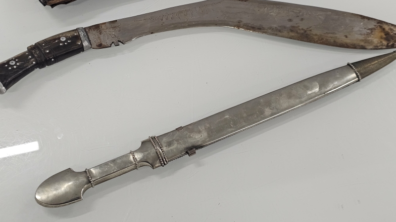 Pidempi 56cm. Kukrissa ja tupessa kulumaa