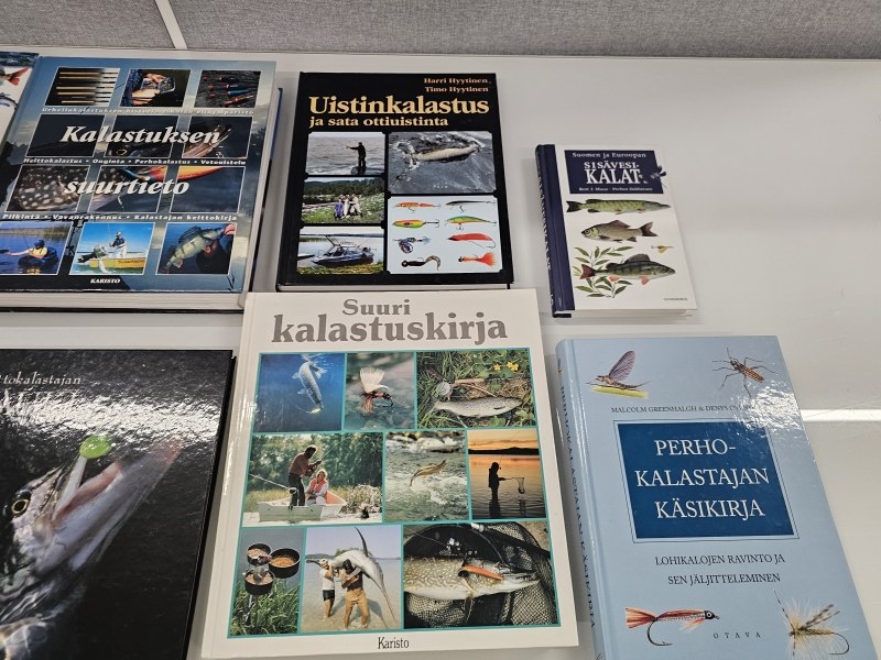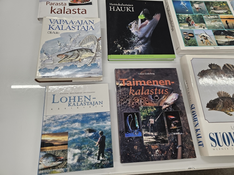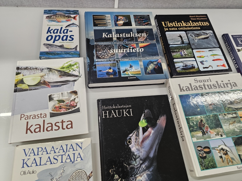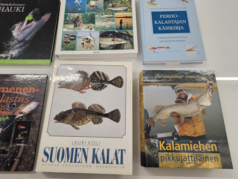 #2127 13kpl kalastuskirjoja: Mm. Kalamiehen pikkujättiläinen, Kalastuksen suurtieto