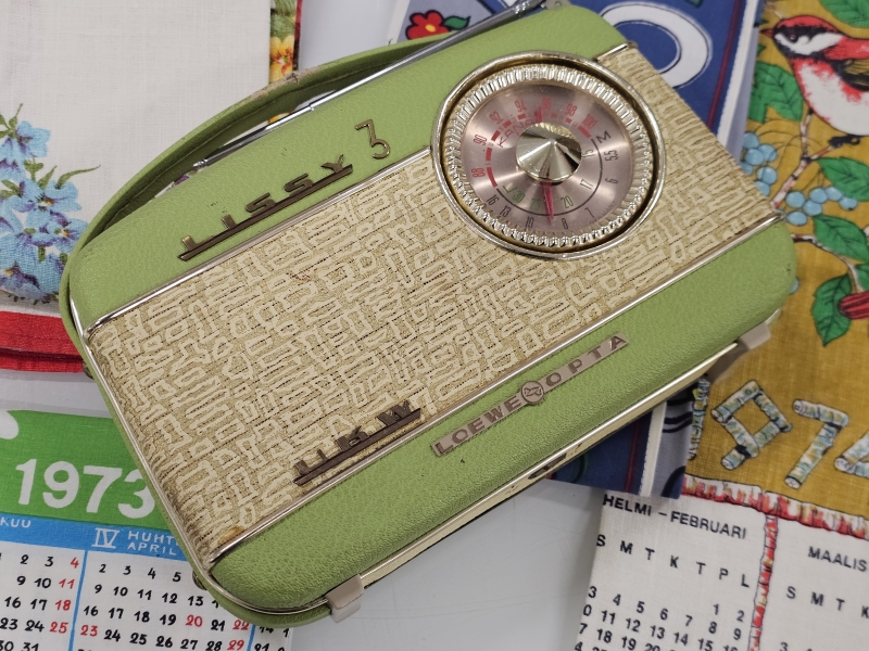 #2323 - Erä keräilytavaraa: Mm. Lissy 3 radio, vuosikalenterit tms.