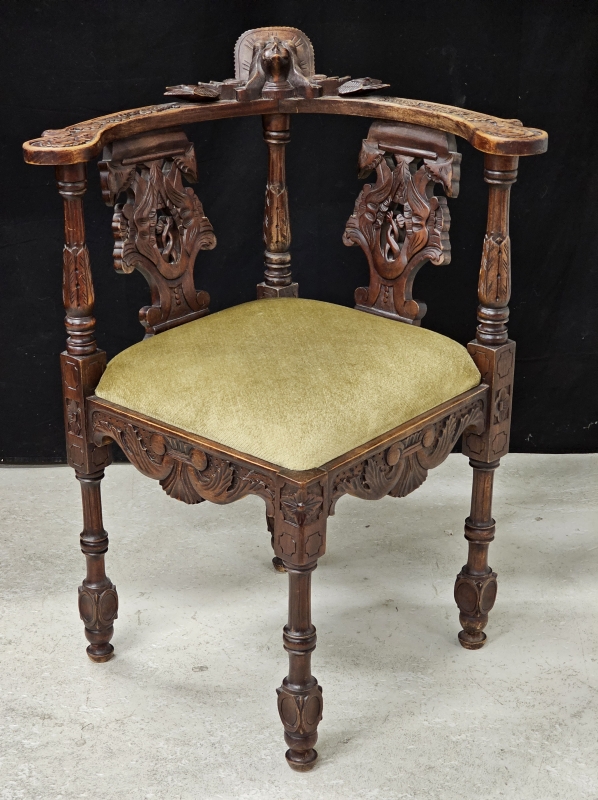 #1811 - Veistoksellinen ns. puuterituoli uudemmalla verhoilulla
