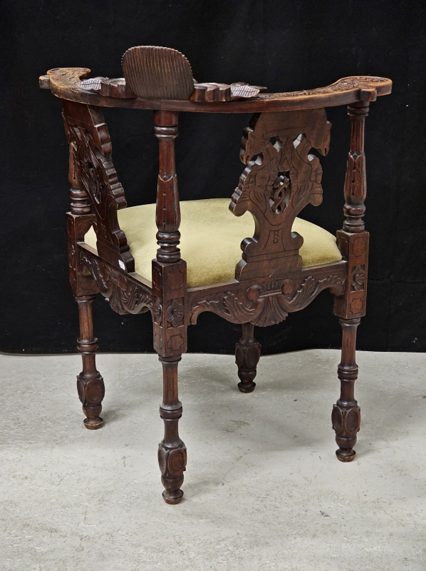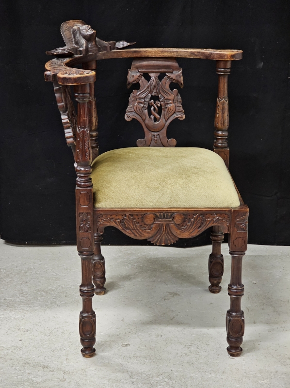 #1811 Veistoksellinen ns. puuterituoli uudemmalla verhoilulla