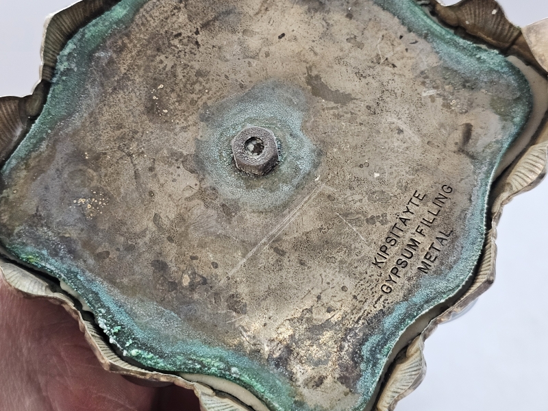 Bruttopaino 910g. Kaiverruksia. Korkein 18cm