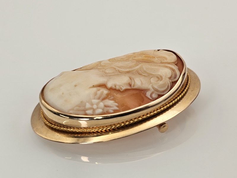 #1170 - 14k kultainen iso camee rintaneula/riipus + korvakorut, 15,46g