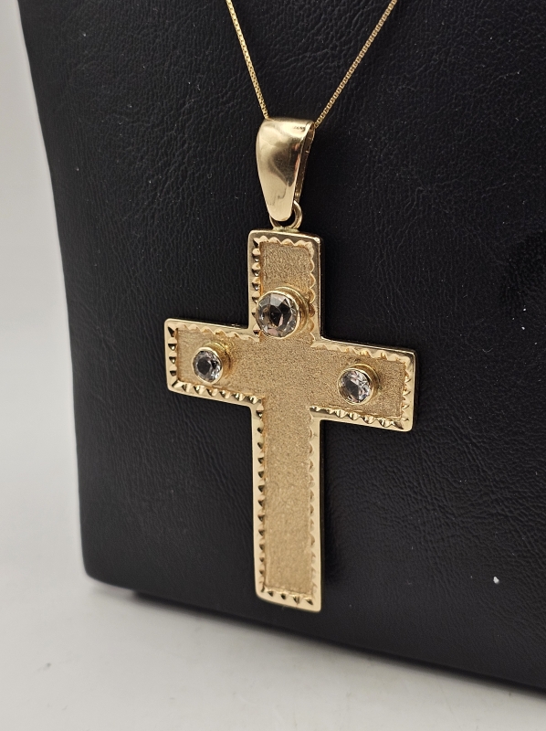 #1030 - 14k kultainen iso ristiriipus kivillä + ketju, 20,03g