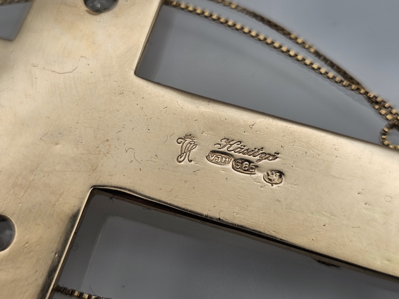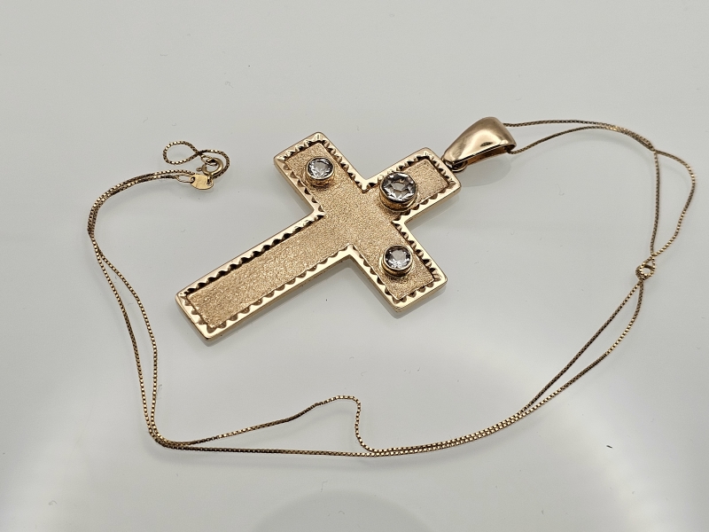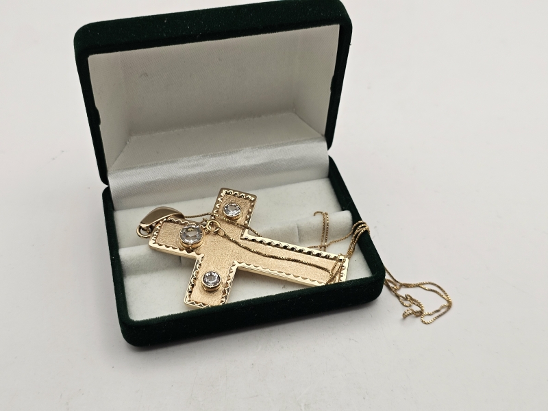 #1030 14k kultainen iso ristiriipus kivillä + ketju, 20,03g