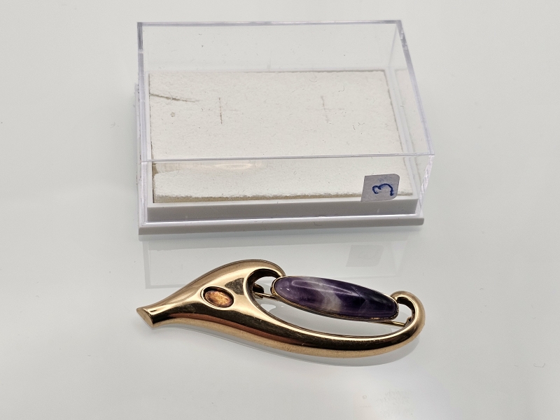 #1031 14k kultainen rintaneula kivellä, 4,63g