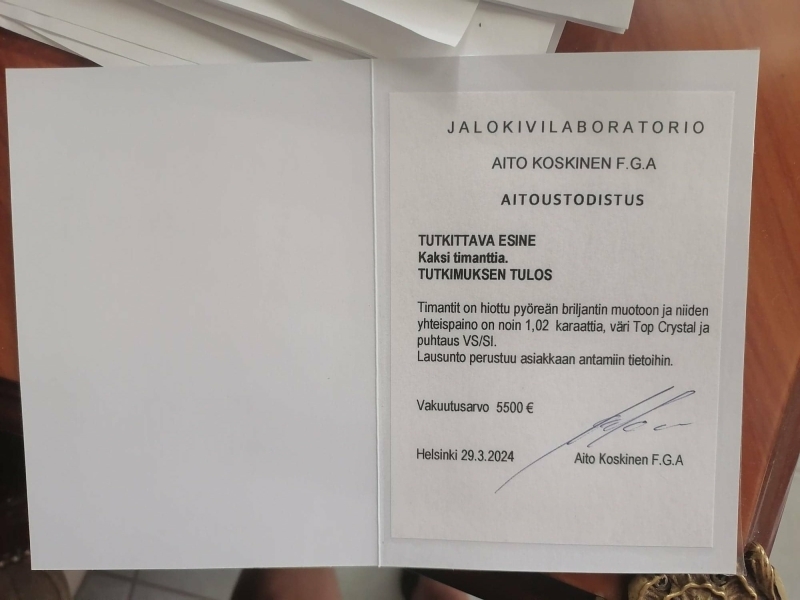 Bruttopaino 1,02g. Mukana aitoustodistus kiville