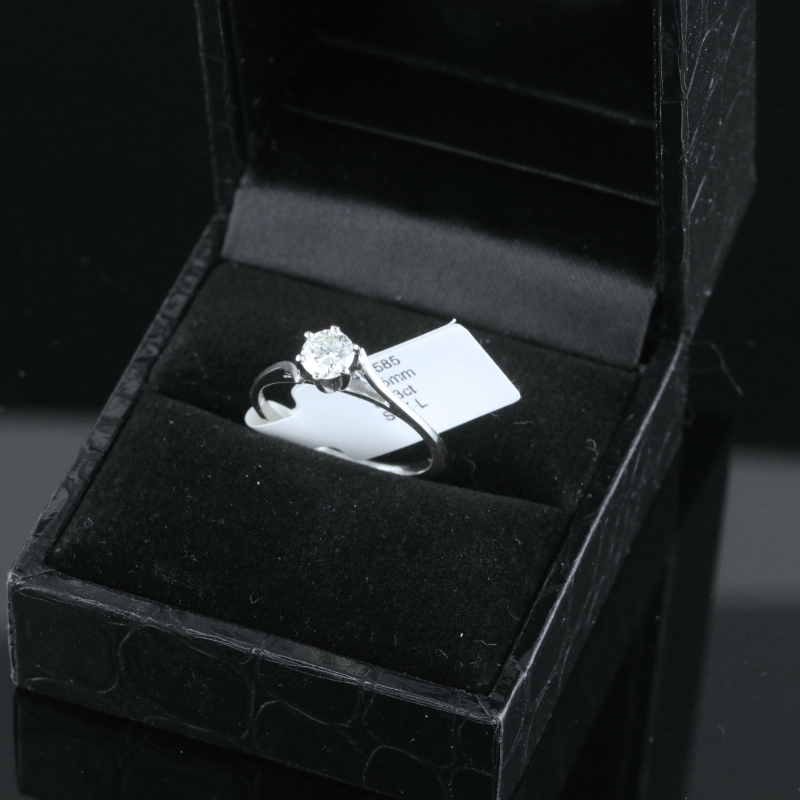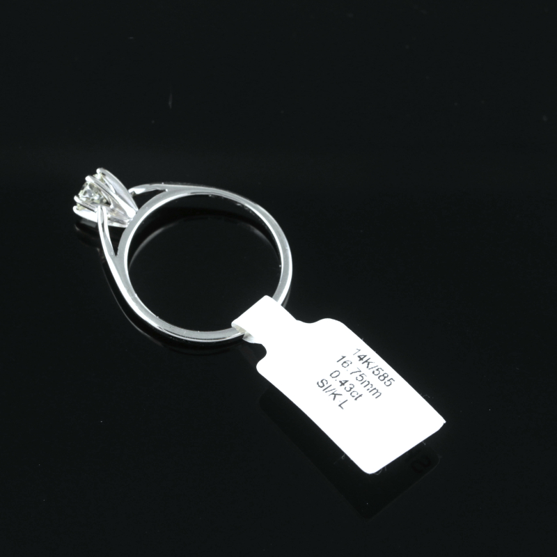 #1184 14k valkokultainen sormus 0,43ct timantilla, 1,93g