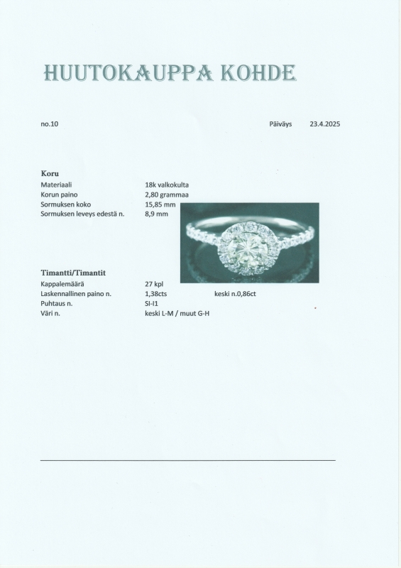 #1233 18k valkokultainen sormus 27 timantilla [yht. 1,38ct], 2,8g