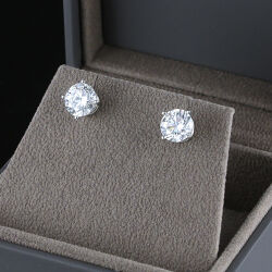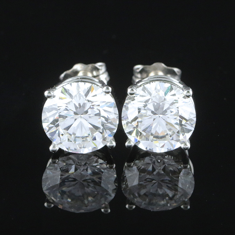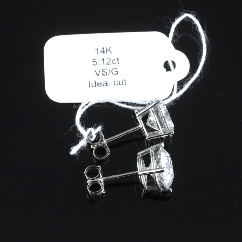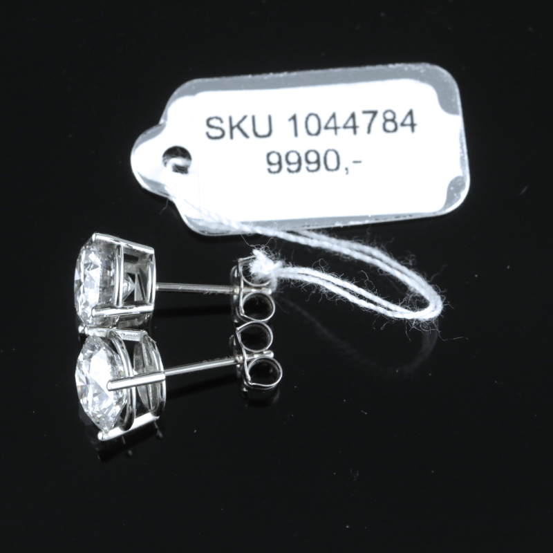 #1326 14k valkokultaiset täysin uudet korvakorut joissa 2,59ct ja 2,53ct lab. timantit, 2,36g
