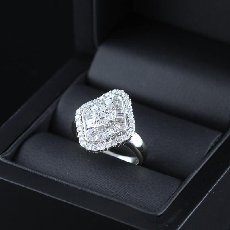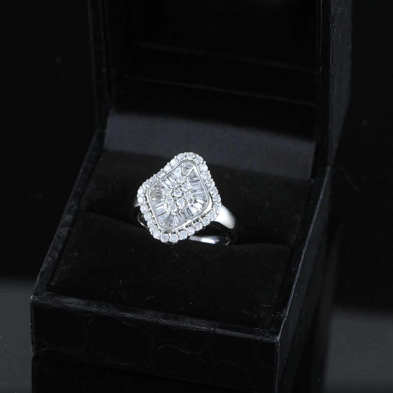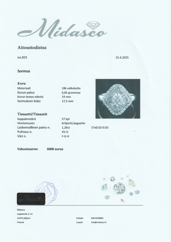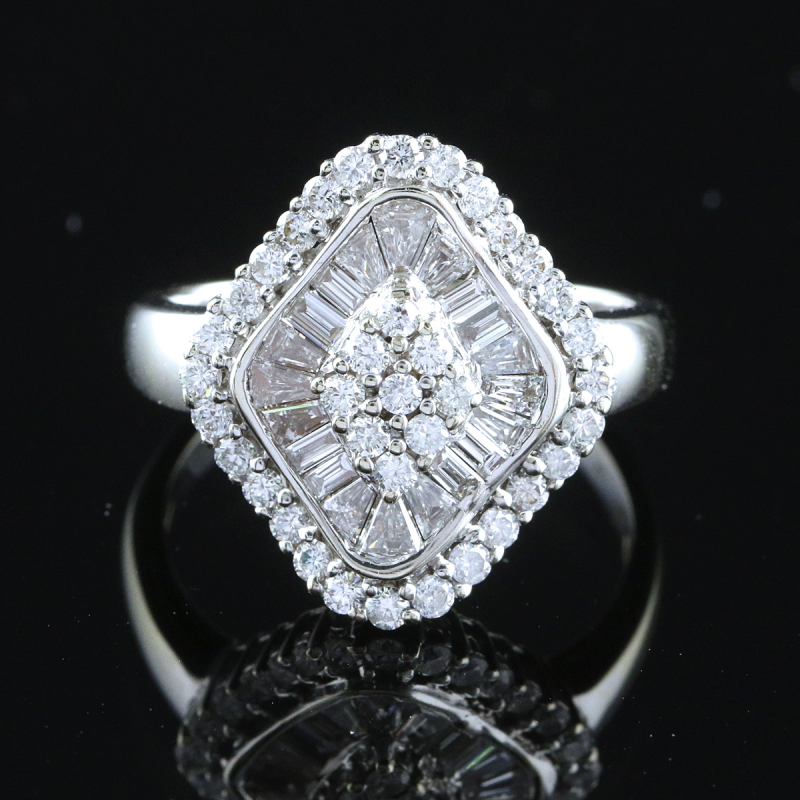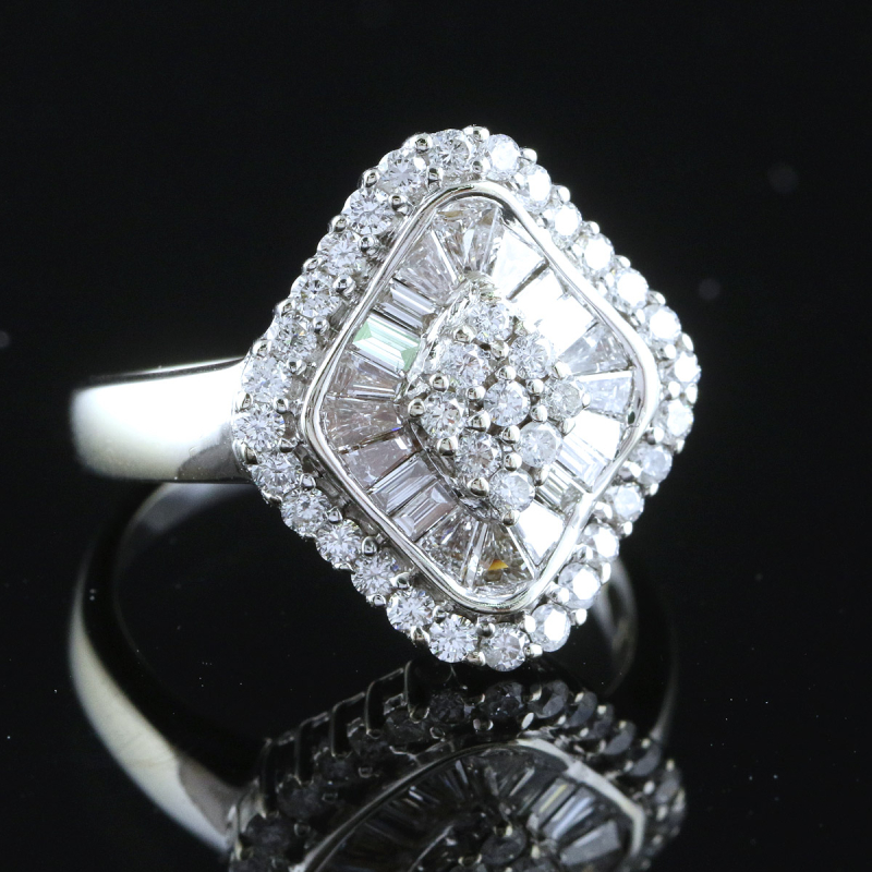 #1399 18k valkokultainen sormus 57 timantilla [yht. 1,26ct], 6,85g