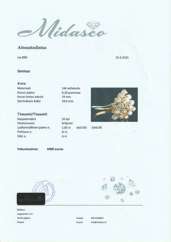 #1426 14k kultainen sormus 16 timantilla [yht. 1,0ct], 4,28g