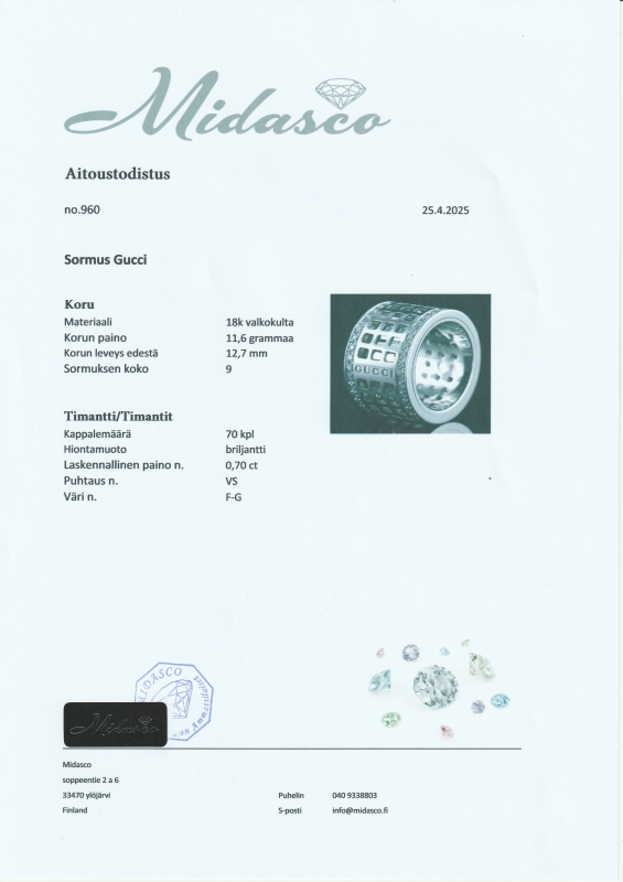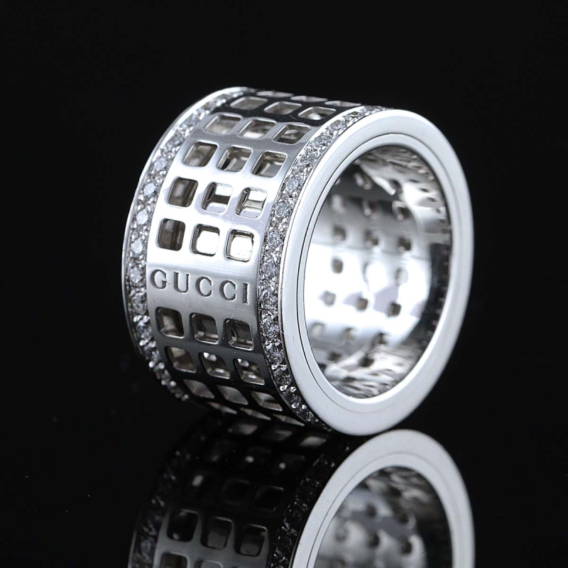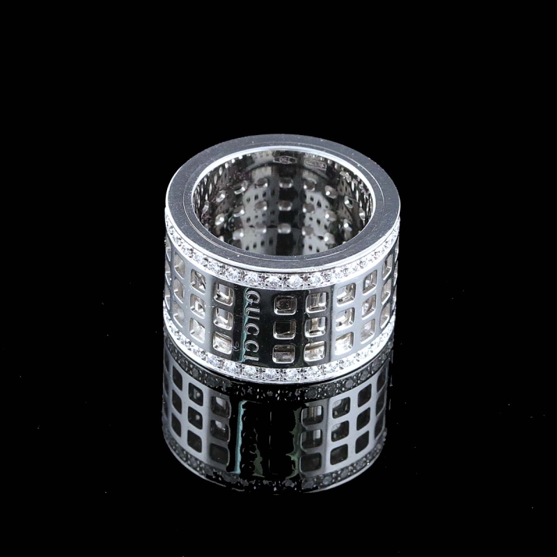 #1482 18k valkokultainen Gucci sormus 70 timantilla [yht. 0,70ct], 11,6g
