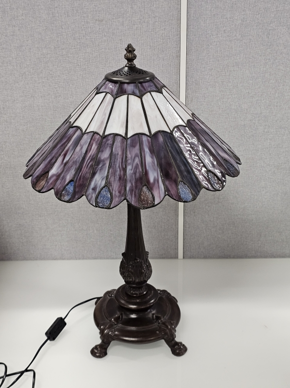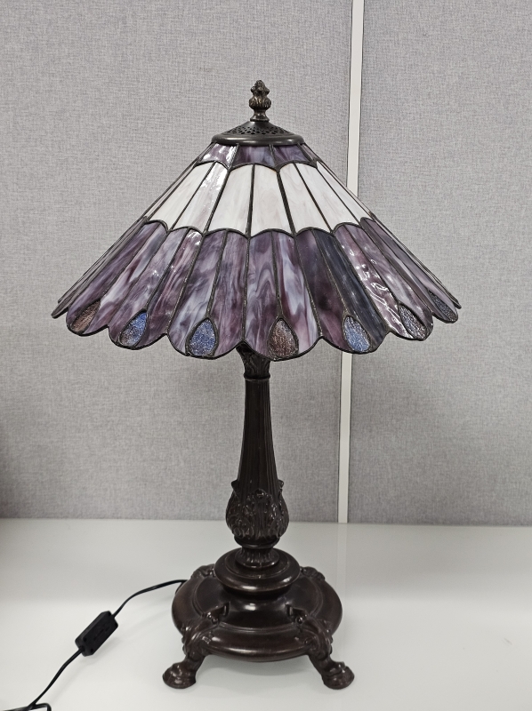#1979 - Tiffanylasinen pöytävalaisin metallijalalla