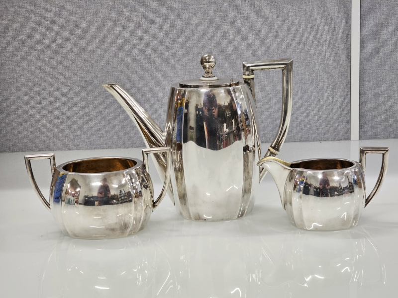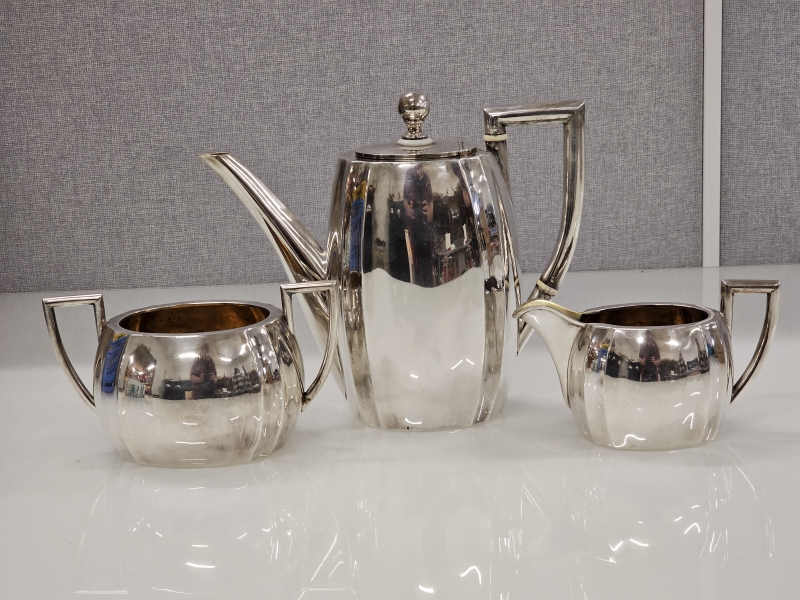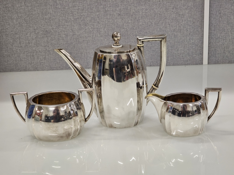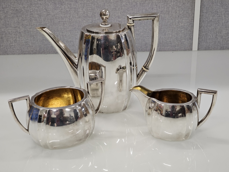 #1298 - Hopeinen kahviastiasto, 3-osaa, Itävalta-Unkari 1800-1900-luvun vaihde