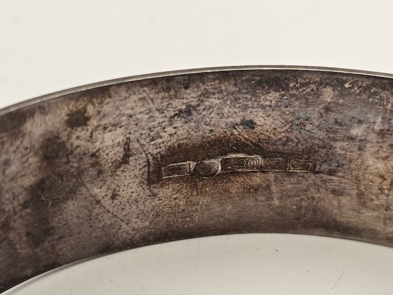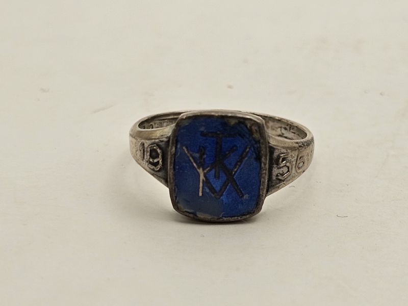 Rannekorun sisämitta 60mm x 54mm. Ei kaiverruksia. Sormuksen emalissa vikaa