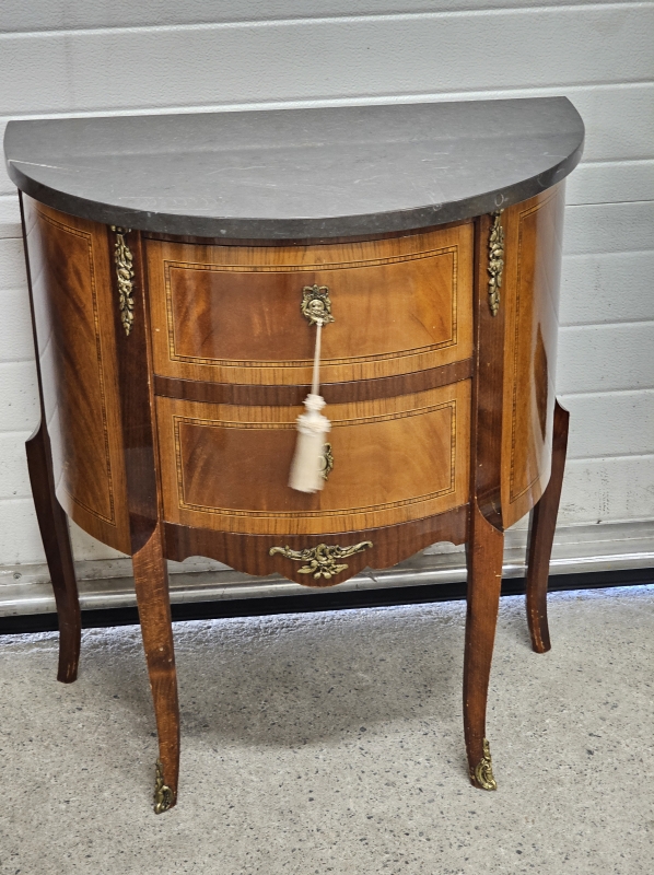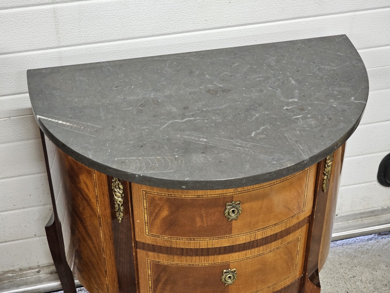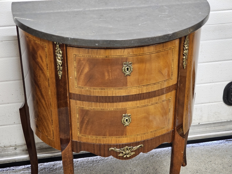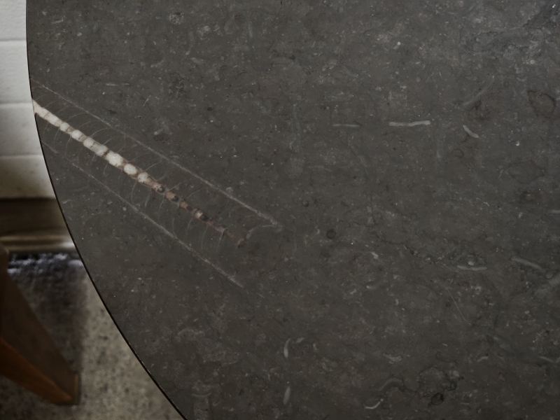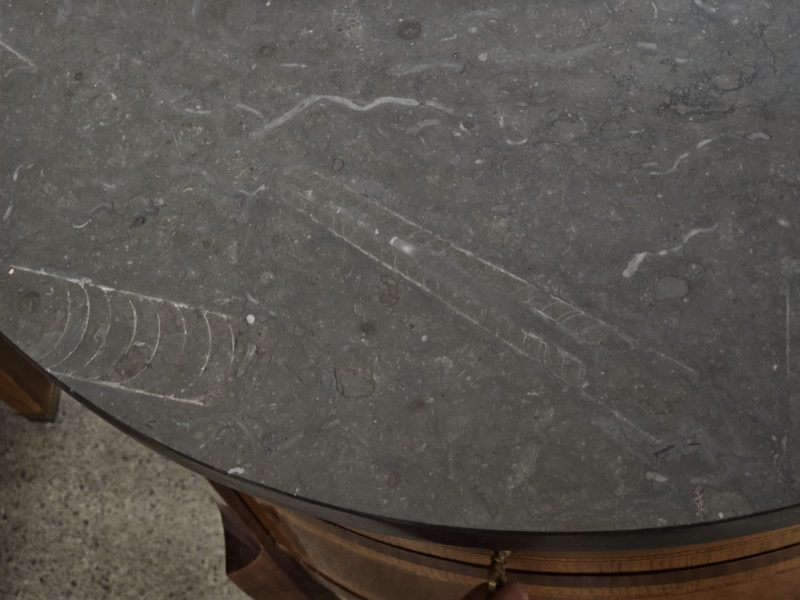 #1857 - Pikkulipasto intarsiaupotteilla ja kivikannella jossa fossiileja