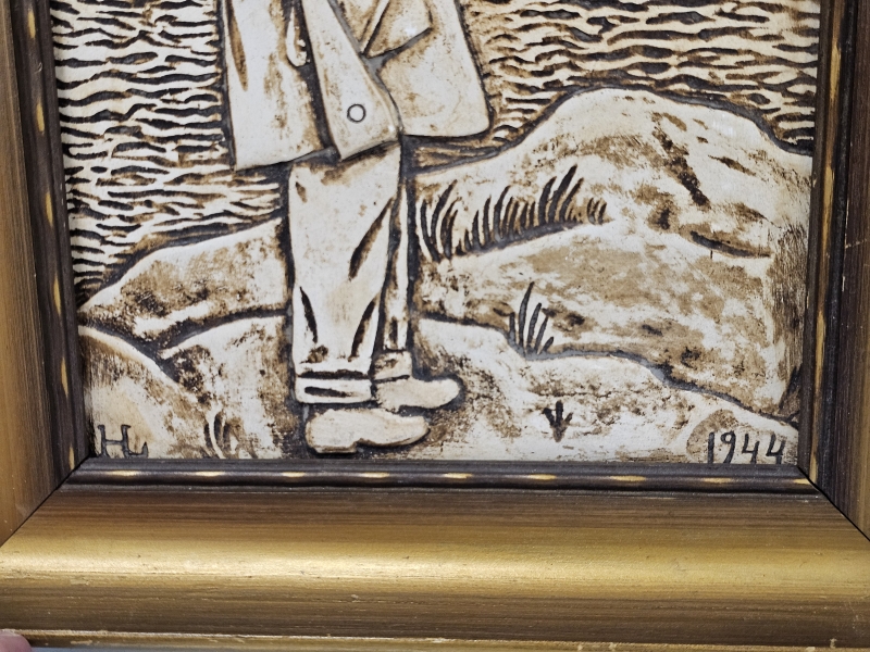 #1699 - Kehystetty kipsinen vartiosotilas reliefi